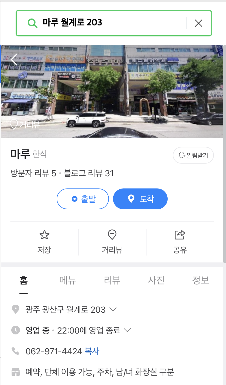 | 위치 | 광주광역시 광산구 월계로 203 영업시간 : 월~토 10시~22시 일요일 휴무 |