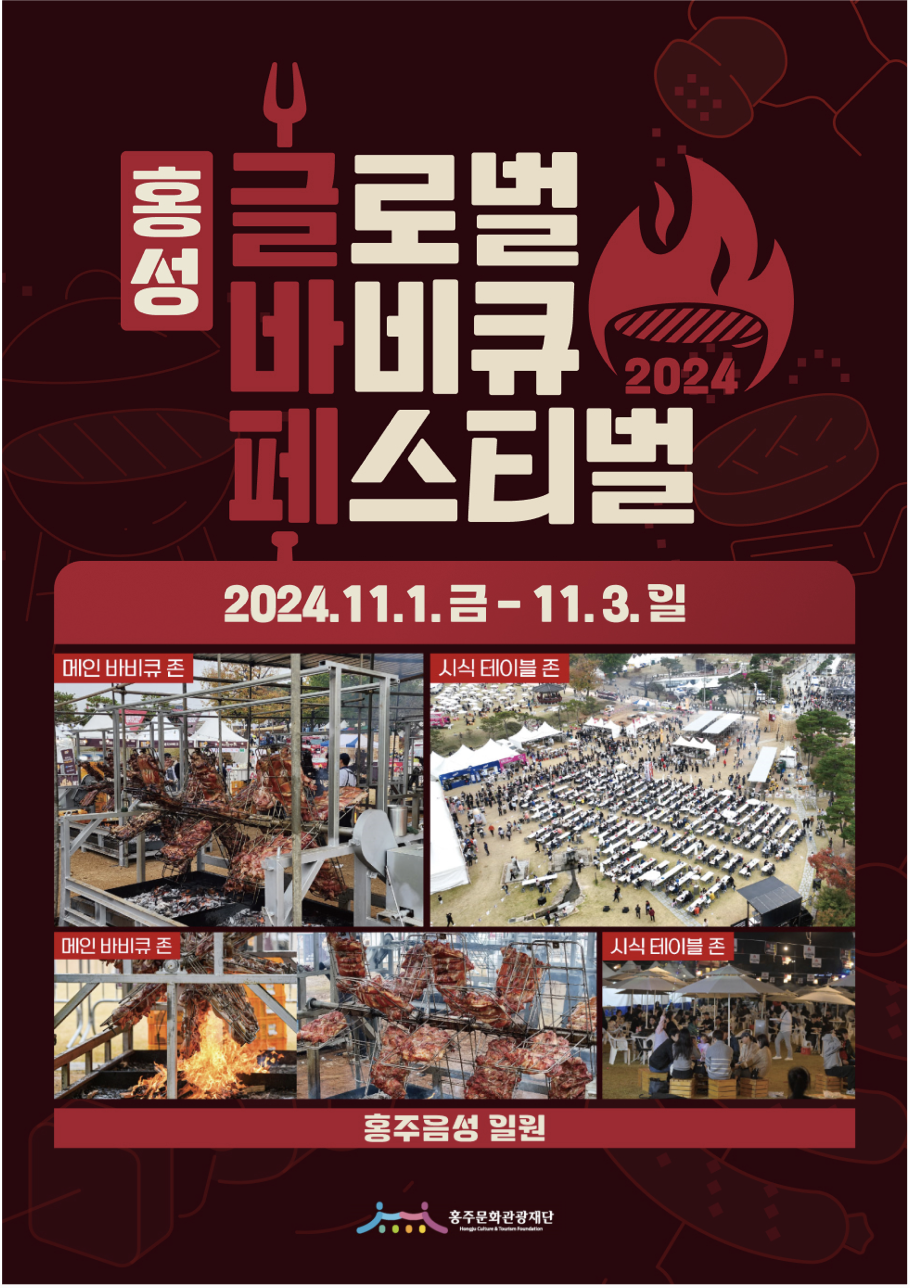 홍성 글로벌 바비큐 페스티벌은 2024. 11. 1.(금) ~ 11. 3.(일)까지 홍주읍성 일원에서 열립니다.